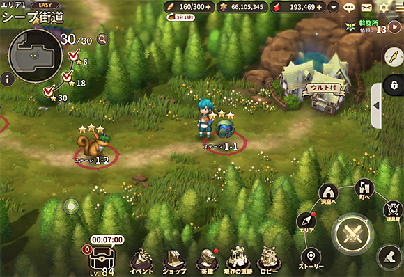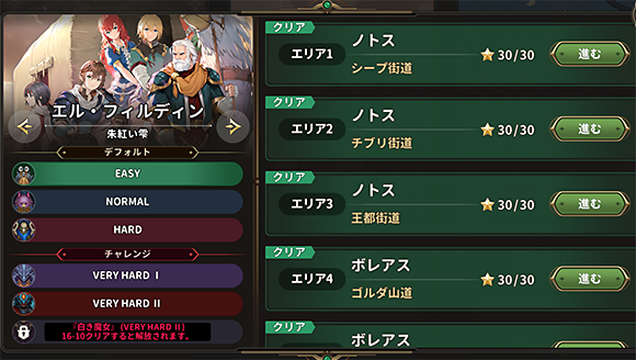 左上にエリア番号と難易度が表示されています。
