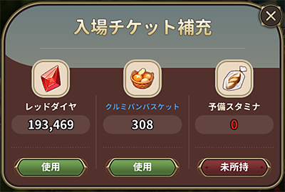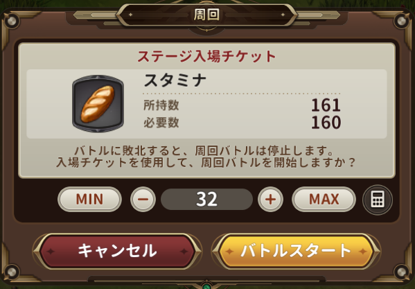 冒険マップのバトルには入場チケットとしてスタミナを使います。