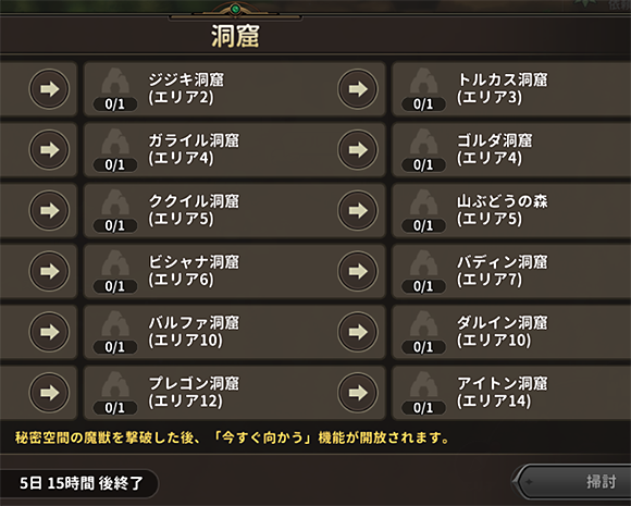 洞窟名の右側の矢印を押すと、その洞窟に移動します。