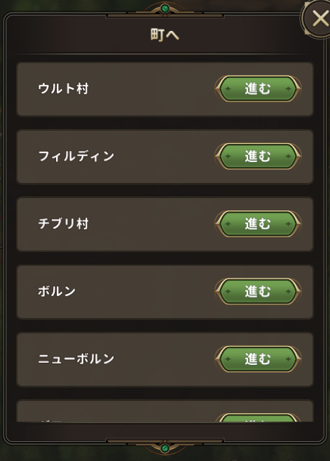 既に入ったことのある町に移動できます。