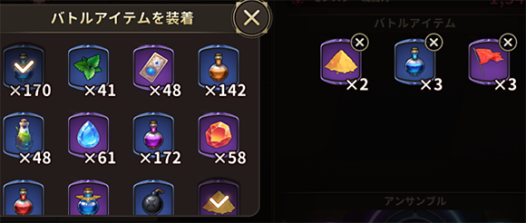 バトルアイテムは同系統のものは1つだけセット出来ます。
