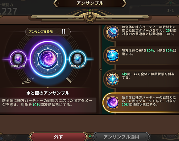 海の檻歌のメインストーリーを進めるとアンサンブルをセットできるようになります。