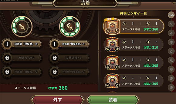 海の檻歌HARD16-10をクリアすると、共鳴ゼンマイをセットできるようになります。