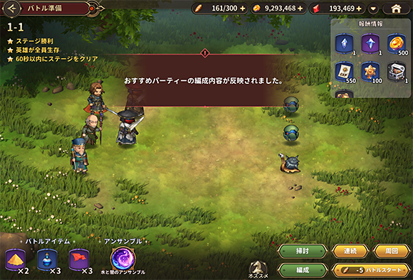 オススメを押すと、このバトルに勝った編成が表示されます。