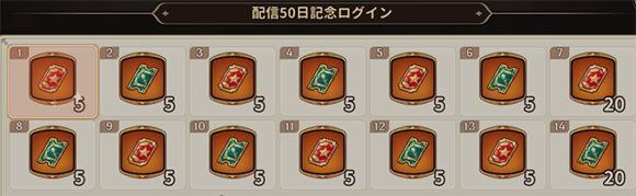 - ①配信50日記念ログイン:毎日ログインするだけでそれぞれ最大50連の英雄・武器召喚チケットを無料でゲット!