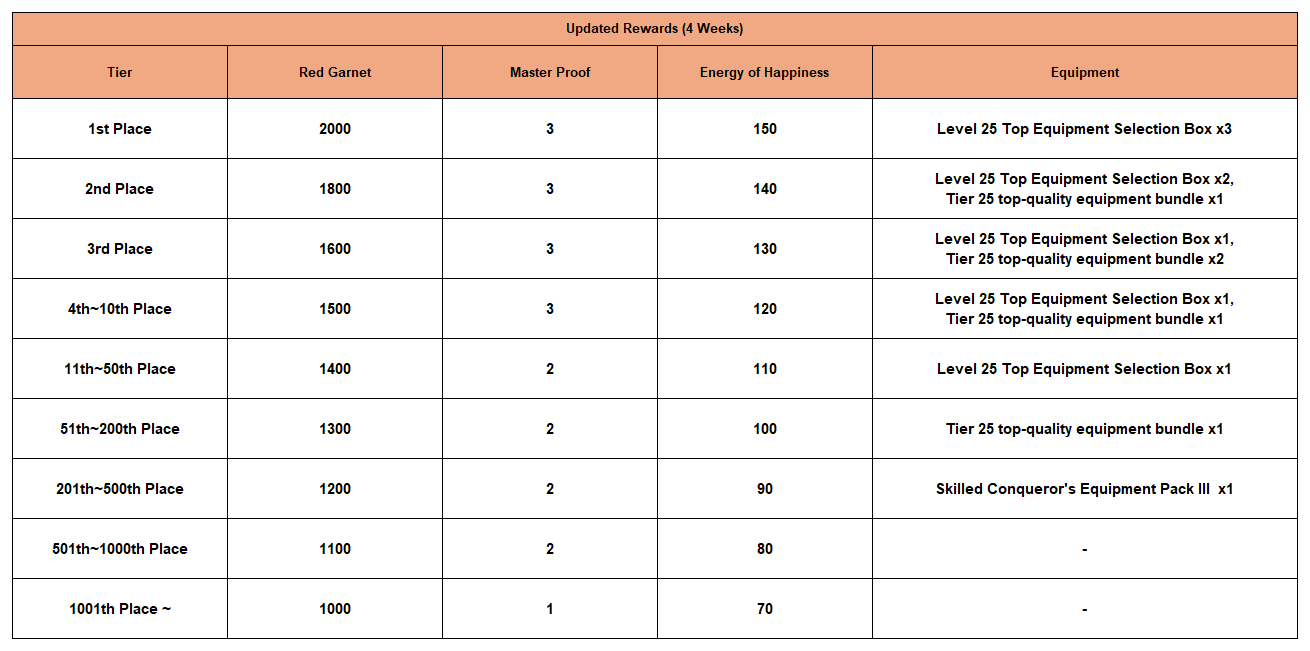 「ガガーブの脅威」と同様に、ランキング報酬が追加され、報酬のバランスが再調整され、以前の 8 週間の期間と比較して損失がないように増加します。