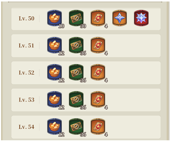 レベルを突破して限界を超えるには、合計3つのリソースが必要です。