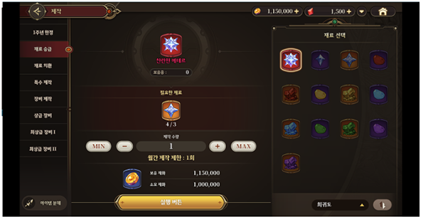 특히, 3단계 / 6단계 / 10단계에서는 특수 재료인 찬란한 에테르가 추가로 필요합니다.