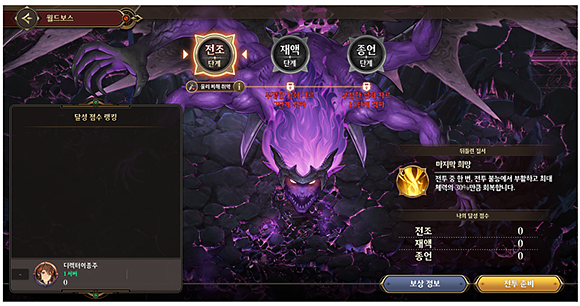2관문 총합 점수(전조+재액+종언)는 월드 보스 피해량에 누적되며,