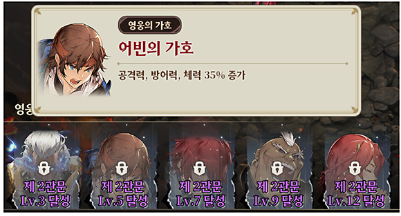 또한 2관문 달성 레벨에 따라 1관문에 특별 가호가 적용되어,