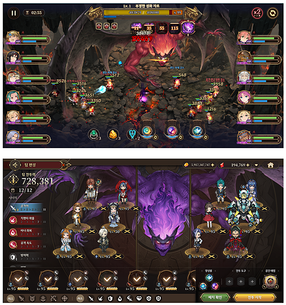 영웅의 스킬을 상황에 맞춰 사용하기보다는 팀 세팅의 운영과 보스의 큰 패턴 때마다