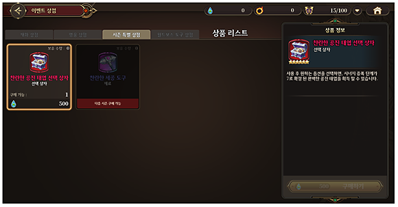 시즌마다 특별 상점 품목은 추가될 예정 입니다.