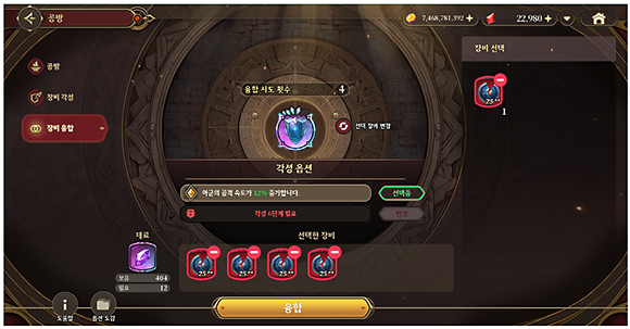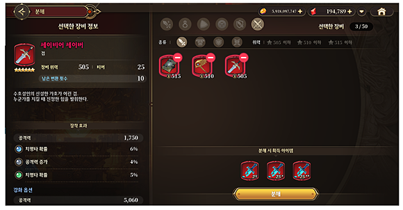 지난번 안내드렸던 25티어 이상 장비 분해 기능이 추가됩니다.