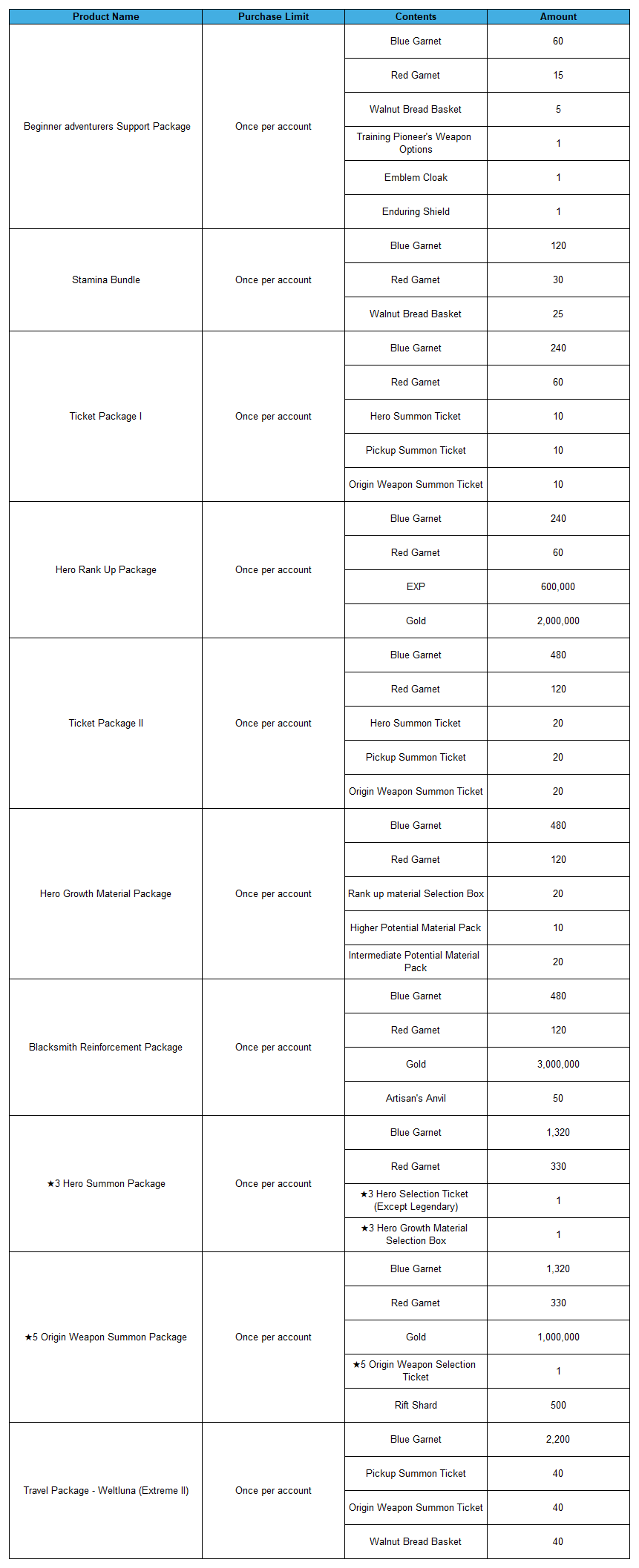 - [EVENT] Beginner Adventurer Support Package, [EVENT] Ticket Package, [EVENT] Stamina Package, [EVENT] Gold Rush Package, [EVENT] Experience Rush Package