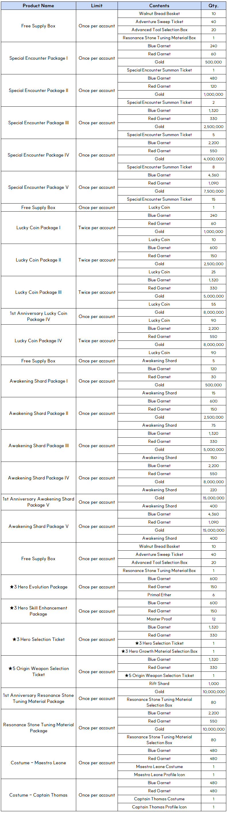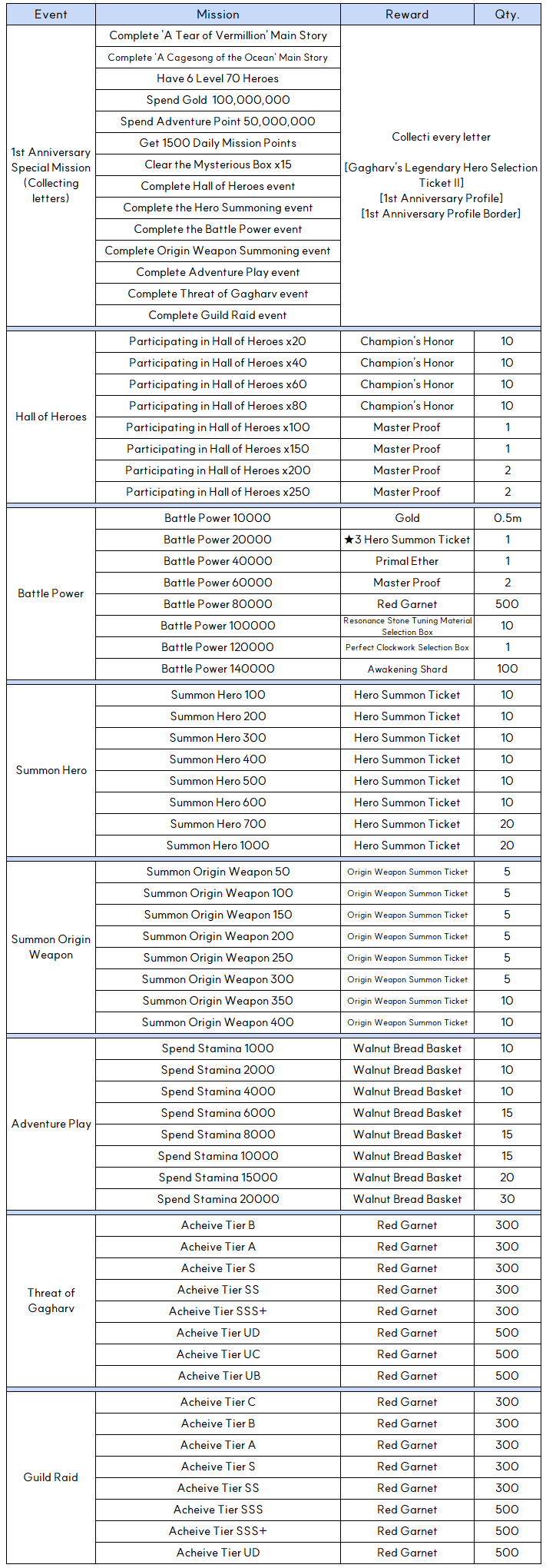 - You can obtain rewards by participating in various events and collecting '1st Anniversary Coins'.