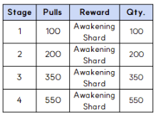 - Based on the number of pulls at once, you can receive Bonus Rewards.