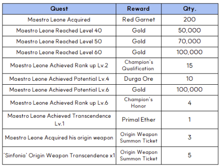 - You can acquire items that help increase Maestro Leone Battle Power.