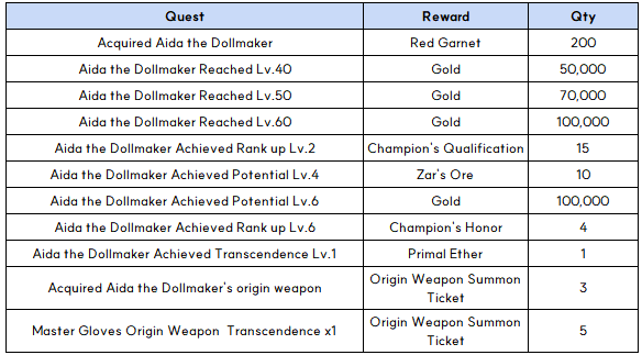 - Aida the Dollmaker's Origin Weapon ─Master Gloves─ has been added