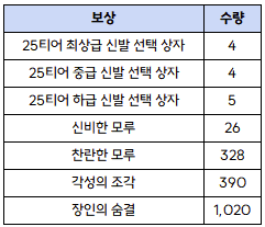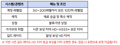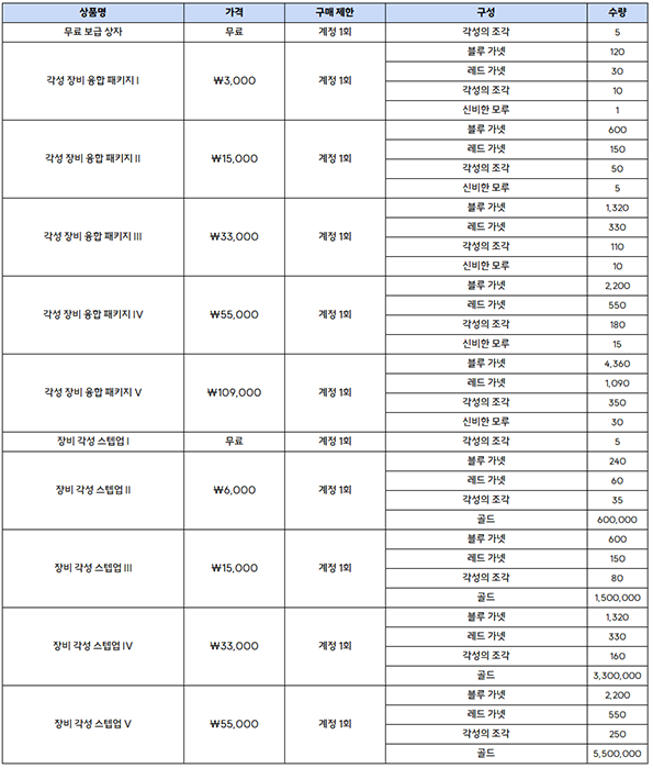 - 기간: 장비 각성 도전 미션 보상 전부 획득 시까지
