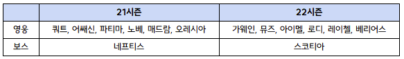 - 새로운 시즌에 따라 다음과 같이 변경됩니다.