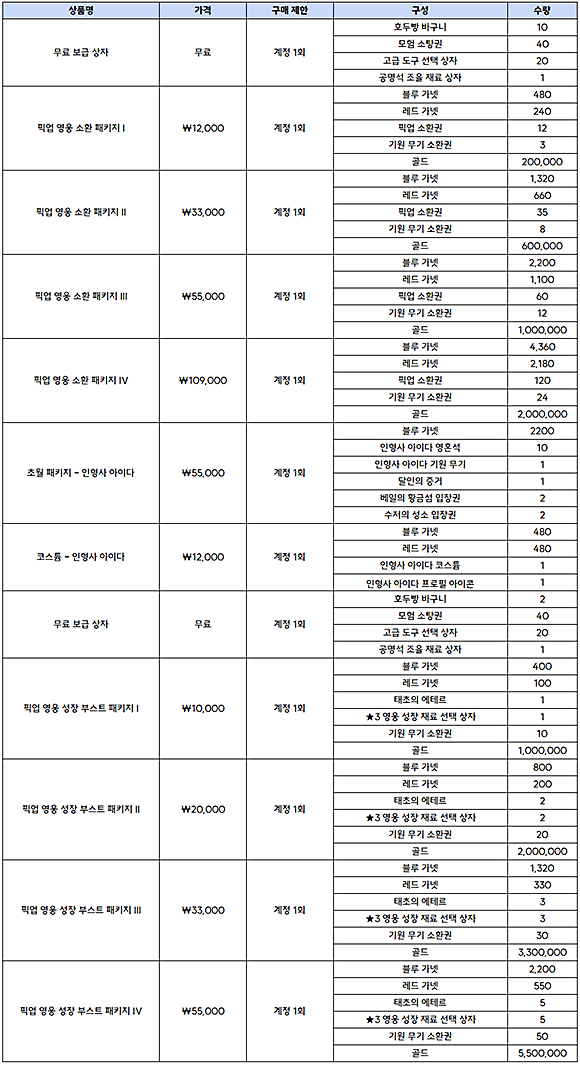 - 시즌 정산 시간 동안은< 영웅의 전당 입장권 >을 구매할 수 없습니다.