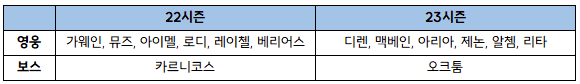 - 새로운 시즌에 따라 다음과 같이 변경됩니다.