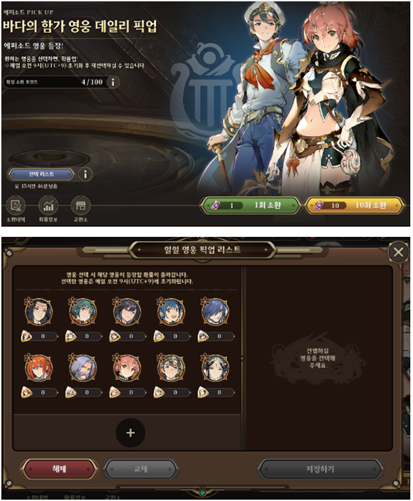- 확률 업 선택 후 소환을 실행했다면, 다음 초기화 전까지 설정한 영웅의 확률 업 상태가 유지됩니다.