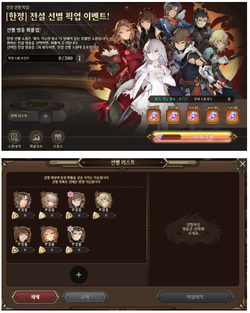 - ※선택하지 않은 전설 영웅이 등장 시에는 [획득 가능 횟수]가 차감되지 않습니다.