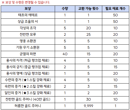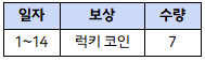 - 이벤트 종료일까지 1번이라도 해당 출석 보상을 획득했을 시, 기간이 종료된 후에도 모든 보상을 획득할 수 있습니다.