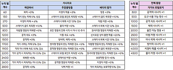 - 모험 달성도에 따라 게임 진행에 도움이 될 수 있도록< 모험가 스킬 >이 다음과 같이 개편됩니다.