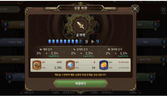 - < 유물 복원 >확장에 따라, 이미 월 1회 초기화를 진행한 모험가님께도 1회 추가 이용이 가능하도록 보정이 진행될 예정입니다.