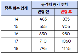 - 공진 태엽 증폭 횟수에 따른 공격력 증가 수치가 다음과 같이 변경됩니다.