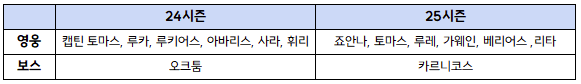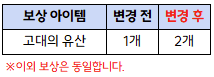 - 새로운 시즌에 따라 다음과 같이 변경됩니다.