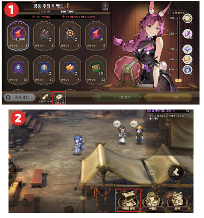 - ① 이벤트 → 경품 추첨 이벤트 → 이벤트 기념 상점 (화면 하단)