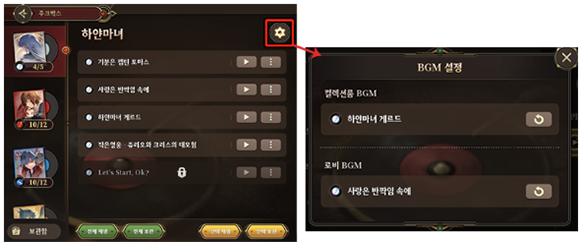 - < 컬렉션룸 >의 주크박스에서 설정한 BGM을 초기화할 수 있는 버튼이 추가됩니다.