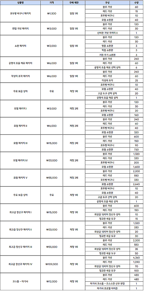 - 구매 이후 30일 동안 게임 내 혜택을 제공하는 신규 상품이 추가됩니다.