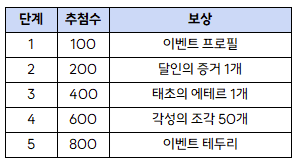 - 다양한 참여형 이벤트를 통해 '이벤트 기념 코인'을 모아 경품을 획득할 수 있습니다.
