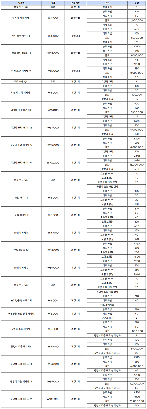 - 무료 보상 및 결제 시 추가 보상을 획득할 수 있는 상품입니다.