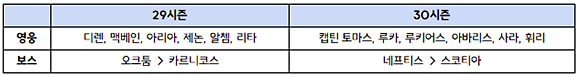 - 새로운 시즌에 따라 다음과 같이 변경됩니다.
