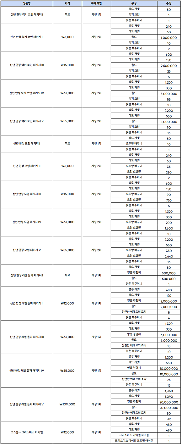 - [겨울맞이] 모험 드랍 이벤트가 종료됩니다.